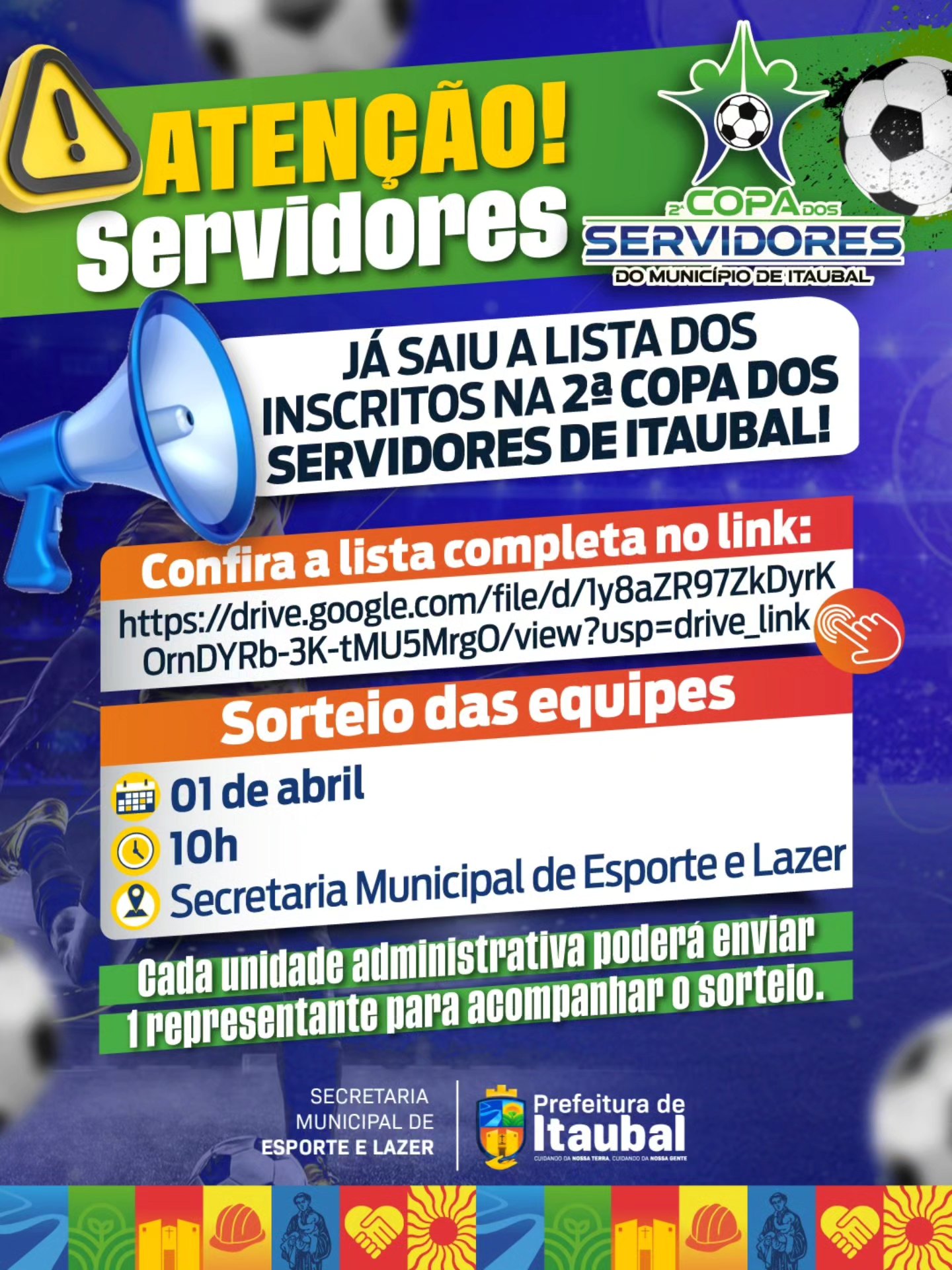 Atenção, servidores! Já está disponível a lista dos inscritos para a 2ª Copa dos Servidores de Itaubal!